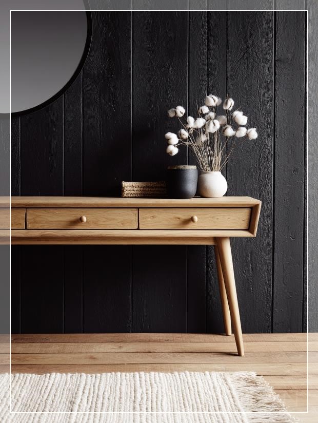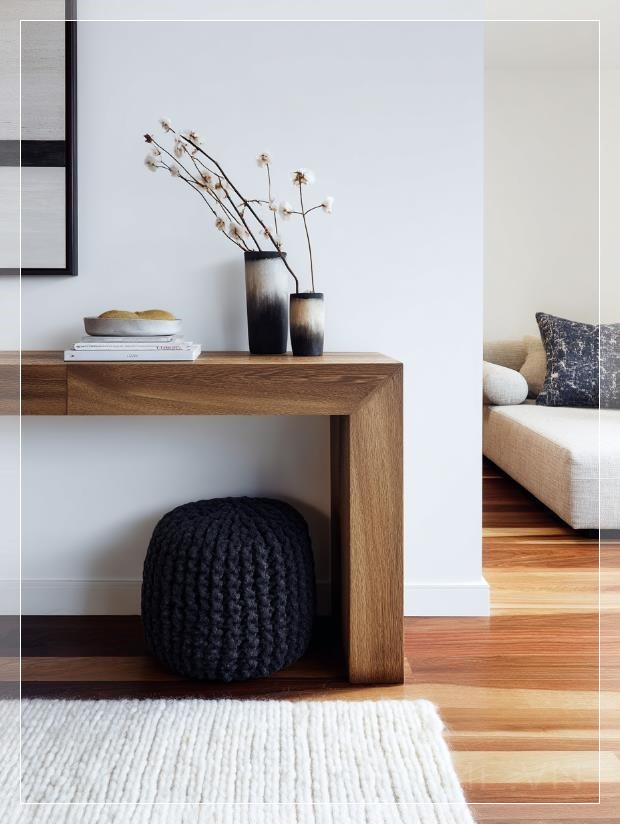 Trong một không gian sống hiện đại và thoải mái, chiếc kệ console trong phòng khách của ngôi nhà kiểu Úc trở thành điểm nhấn nổi bật. Với sàn gỗ ấm áp và tấm thảm len mềm mại, không gian này tỏa ra một cảm giác gần gũi, ấm cúng và đầy sức sống. Phong cách thiết kế là sự kết hợp tuyệt vời giữa sự hiện đại và sự thoải mái, mang đậm nét đặc trưng của vùng biển, nơi mọi chi tiết đều tôn vinh vẻ đẹp tự nhiên.