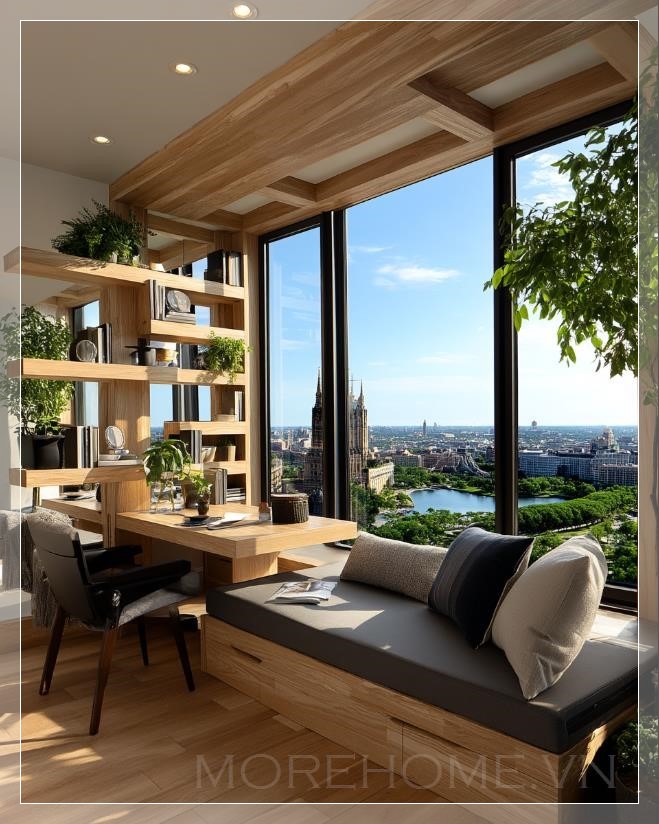 Không gian studio này là ví dụ điển hình về việc sử dụng các món đồ nội thất thông minh để tối ưu hóa không gian sống. Sự kết hợp giữa chức năng và thẩm mỹ giúp tạo nên một môi trường sống đầy cảm hứng. Với sự chú trọng vào từng chi tiết nhỏ, mỗi góc trong căn phòng đều có thể trở thành một không gian riêng biệt mà không cảm thấy chật chội.