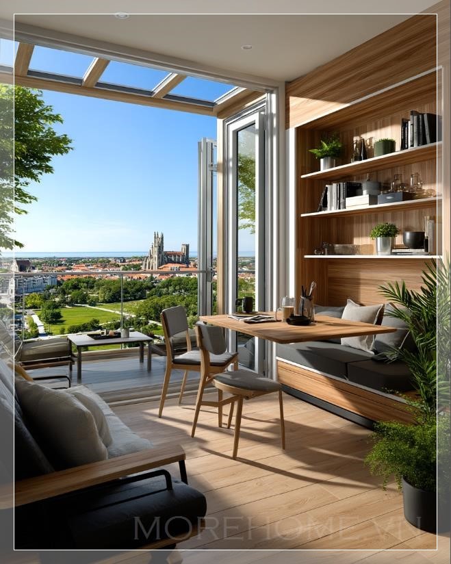 Với sự kết hợp của các món đồ nội thất thông minh, mỗi món đồ đều có công dụng rõ ràng và hiệu quả. Các giải pháp lưu trữ thông minh giúp không gian không bị lộn xộn, tạo ra một không gian sống thoải mái và thanh bình. Những kệ cao, giá treo tường và các ngăn kéo bí mật là những yếu tố quan trọng trong việc tối ưu hóa không gian sống nhỏ. Thêm vào đó, ánh sáng tự nhiên từ cửa sổ lớn giúp không gian luôn tràn đầy năng lượng và sáng sủa.