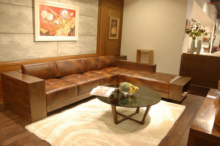 Mẫu sofa gỗ óc chó được thiết kế ấn tượng