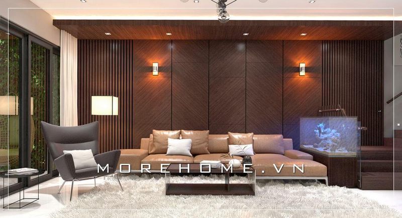 Trang trí nội thất phòng khách biệt thự cao cấp với sofa gỗ tự nhiên bọc da nhập khẩu