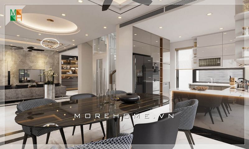 Giới thiệu mẫu thiết kế nội thất không gian phòng ăn và bếp tiện nghi, sang trọng cho biệt thự, nhà phố, chung cư cao cấp.