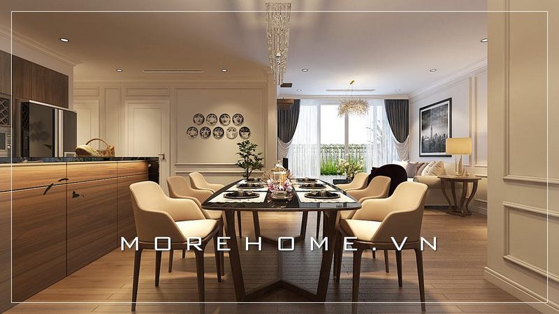 Mẫu thiết kế phòng ăn chung cư Hoàng Quốc Việt đẹp với cách bố trí nội thất hợp lí, tinh tế