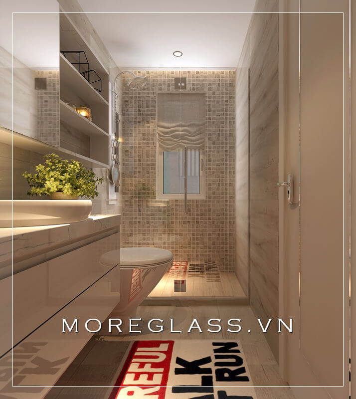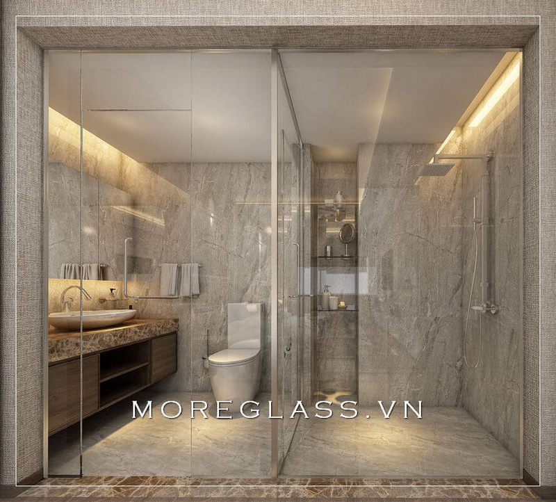 Mẫu thiết kế nhà tắm kính cao cấp với kính cường lực trong suốt giúp tạo nên vẻ đẹp tinh tế, sang trọng mà không làm cho phòng tắm nhỏ cảm giác bí bách.