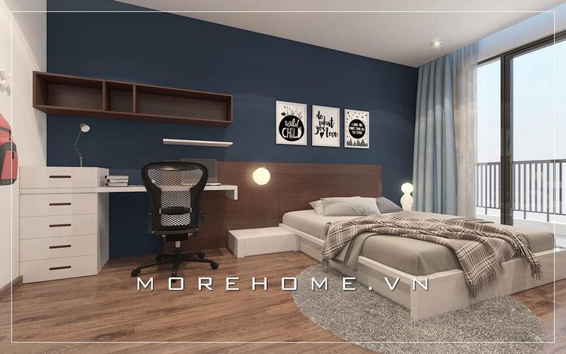 Gia chủ đã chọn chất liệu gỗ công nghiệp để làm nội thất phòng ngủ con trai hiện đại, giúp tạo ra một cảm giác thanh thoát và nhẹ nhàng hơn.